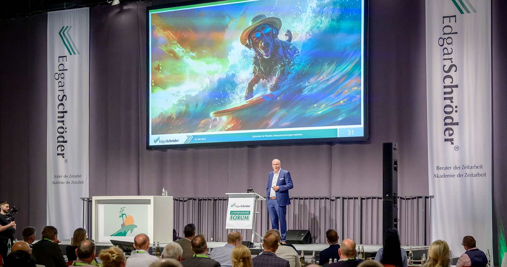 Das ES-Unternehmerforum hat sich mittlerweile als eine feste Größe in der Personaldienstleistungsbranche etabliert. Auch die 17. Ausgabe der Veranstaltung glänzte mit hochkarätigen Gästen und hohen Besucherzahlen. Dabei war das Programm so vielfältig wie die Branche selbst und bot den Besucher*innen eine 360-Grad-Betrachtung. Edgar Schröder, Gastgeber des Unternehmerforums, war gerade von den unterschiedlichen Vortragsthemen begeistert: „Es ist gelungen, die Branche von allen erdenklichen Seiten zu beleuchten. Damit haben wir es geschafft, das Motto der Veranstaltung ‚Mit Know-how auf die Welle des Erfolgs!‘, mit Leben zu erfüllen.“